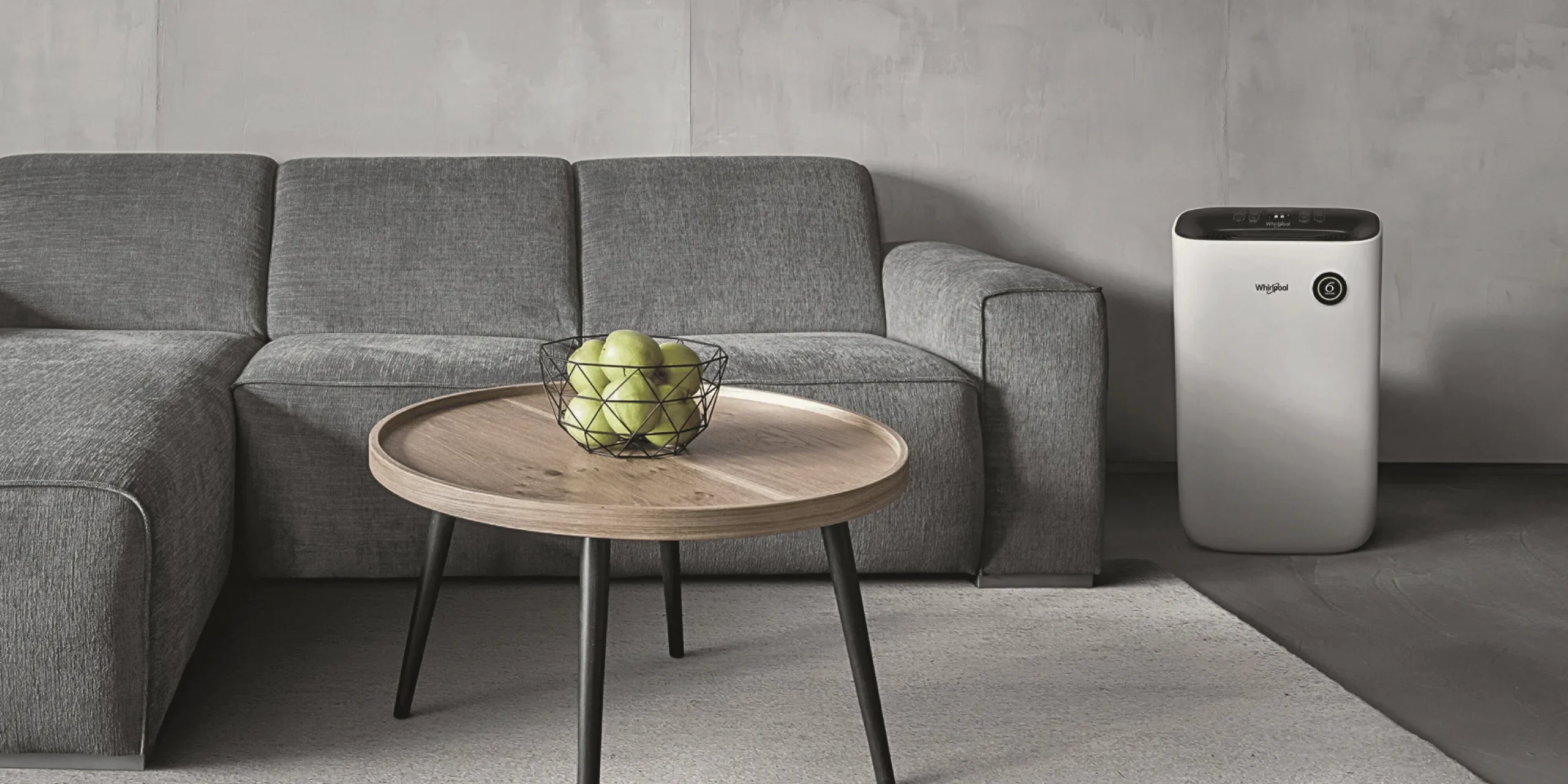 Osuszacz Whirlpool DE20W5252 w salonie. Źródło: materiały producenta Whirlpool